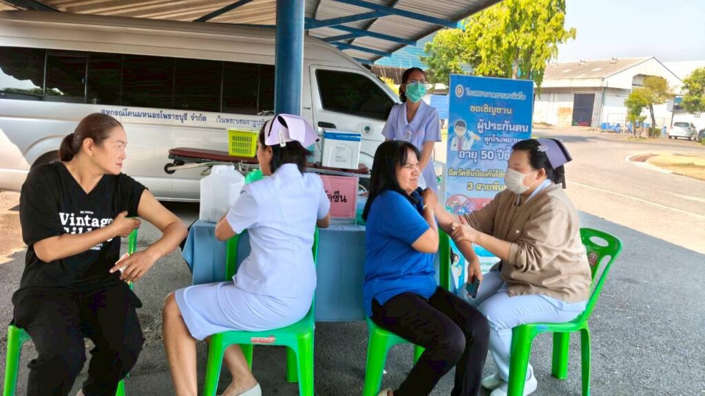 บรรยากาศเต็มไปด้วยความร่วมมือและความใส่ใจๅเพราะ “สุขภาพของพนักงาน” คือพื้นฐานขององค์กรที่แข็งแรง โรงพยาบาลของเรายินดีเป็นส่วนหนึ่งในการดูแล พร้อมให้บริการฉีดวัคซีนทั้งในและนอกสถานที่ สะดวก ปลอดภัย และปรับให้เหมาะกับแต่ละองค์กร